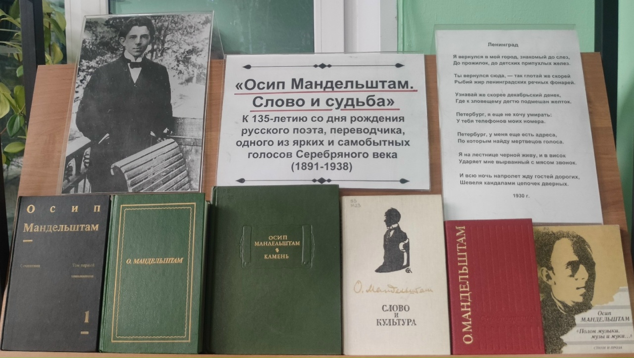 Книжная выставка к 135-летию со дня рождения Осипа Мандельштама