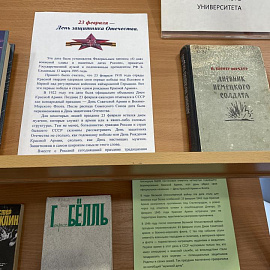 Читальный зал библиотеки МАУ (205В) приглашает посетить книжную выставку «Слово во славу защитников». На выставке представлены произведения художественной литературы отечественной и зарубежной прозы из фонда библиотеки МАУ.