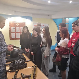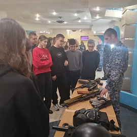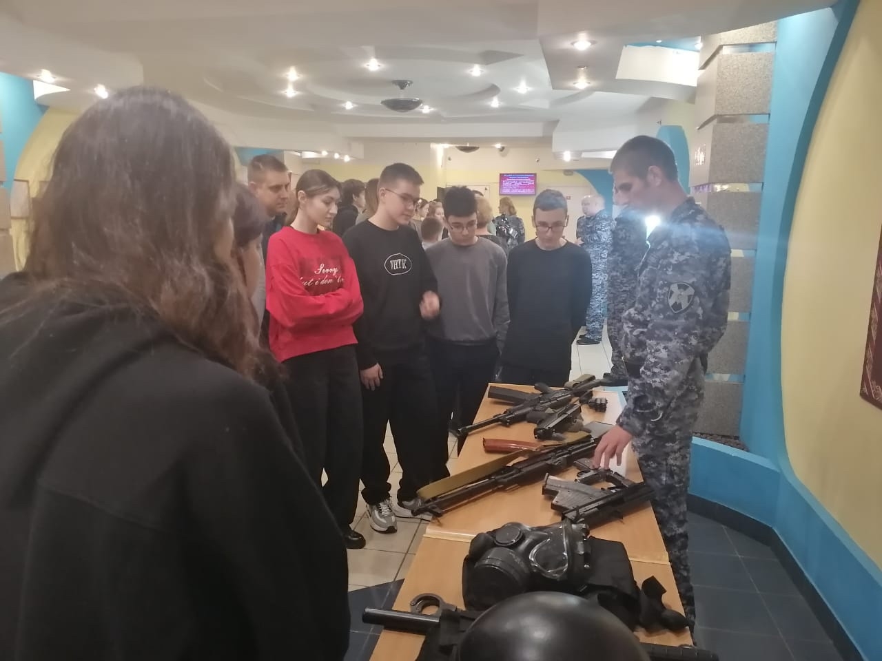 Студенты 3-го курса получили уникальную возможность ознакомиться с вооружением подразделения: они смогли сделать неполную разборку пистолета Макарова, подержать в руках легендарный АК и пистолет-пулемет АЕК-19.