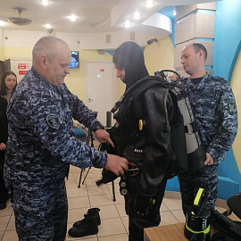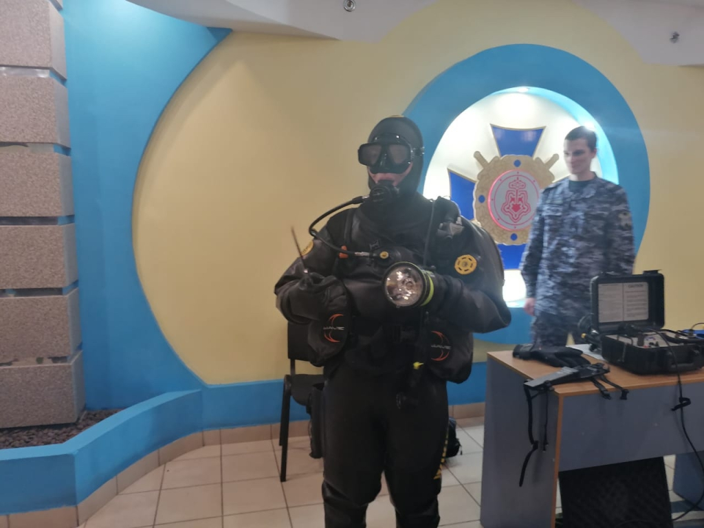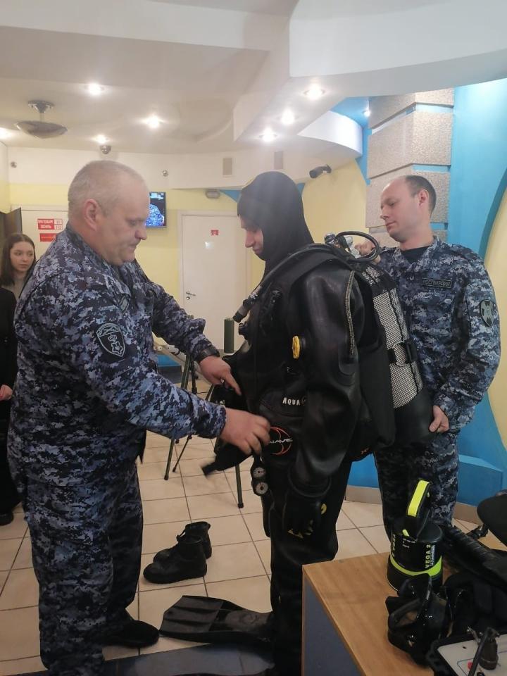 Кроме того, ребята примерили индивидуальные средства личной безопасности — бронежилеты и каски. Сотрудники отдельного взвода рассказали о мобильном комплексе для охраны объектов, а также предложили примерить водолазное снаряжение! Это было незабываемо — почувствовать себя настоящими боевыми пловцами!