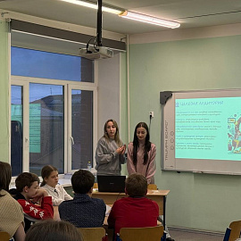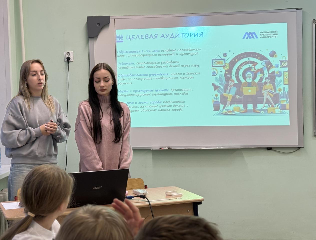 Студентки 4-го курса профиля «Начальное образование» Валентина Мельник и Алеся Касьяненко, под руководством старшего преподавателя кафедры педагогики Элеоноры Карелиной, представили свой проект игры и мобильного приложение «Викторина по Мурманску». Они не только поделились секретами создания проекта, но и вовлекли школьников в интерактивную игру, продемонстрировав, как можно применять научные знания в образовательном процессе.
