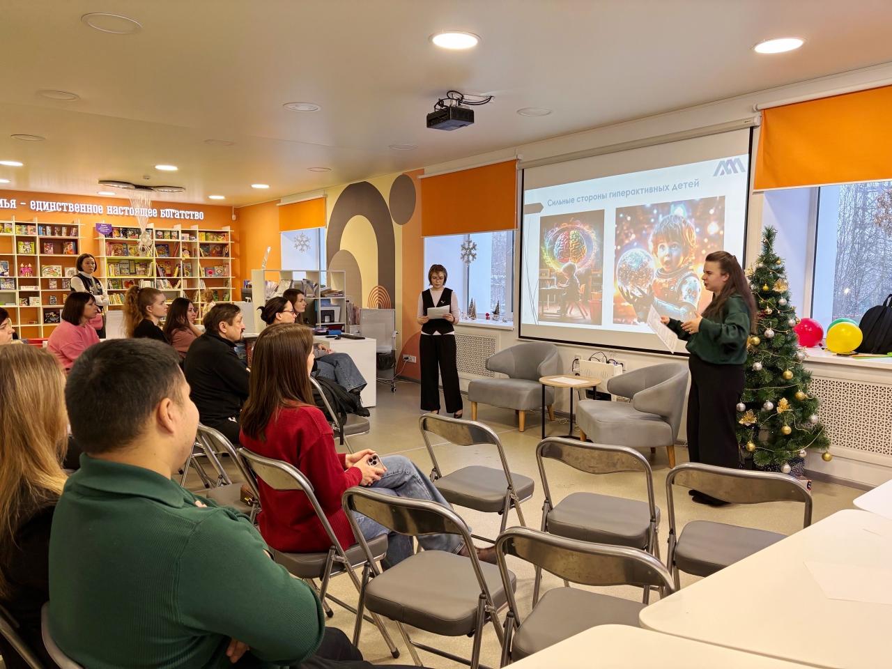 В начале встречи организаторы подробно рассказали о природе гиперактивности у детей дошкольного возраста и раскрыли мифы, которые часто встречаются и мешают родителям успешно решать воспитательные задачи. Родители узнали, что отличает обычную детскую активность от гиперактивности, какие факторы влияют на развитие этой особенности, и как правильно распознать признаки, требующие внимания со стороны взрослых.