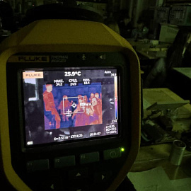 Заведующий кафедрой судовождения, кандидат технических наук, доцент Буев Сергей Александрович подробно рассказал о принципах работы тепловизора — прибора, который позволяет «видеть» тепло и визуализировать температурные поля объектов. Обсудили виды применения инфракрасной техники для оценки технического состояния электрооборудования и для выявления дефектов ограждающих конструкций.
