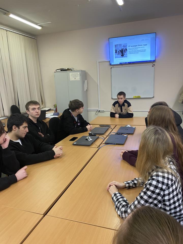 В патриотическом мероприятии «День полного освобождения Ленинграда от фашистской блокады» приняли участие учебные группы: БМЕН-ЛУП-22, БЭН-ФИНКР-23, ЭФинб24о-1, ПОдп-ЭГб25о-1, И-УИДб24о-1.