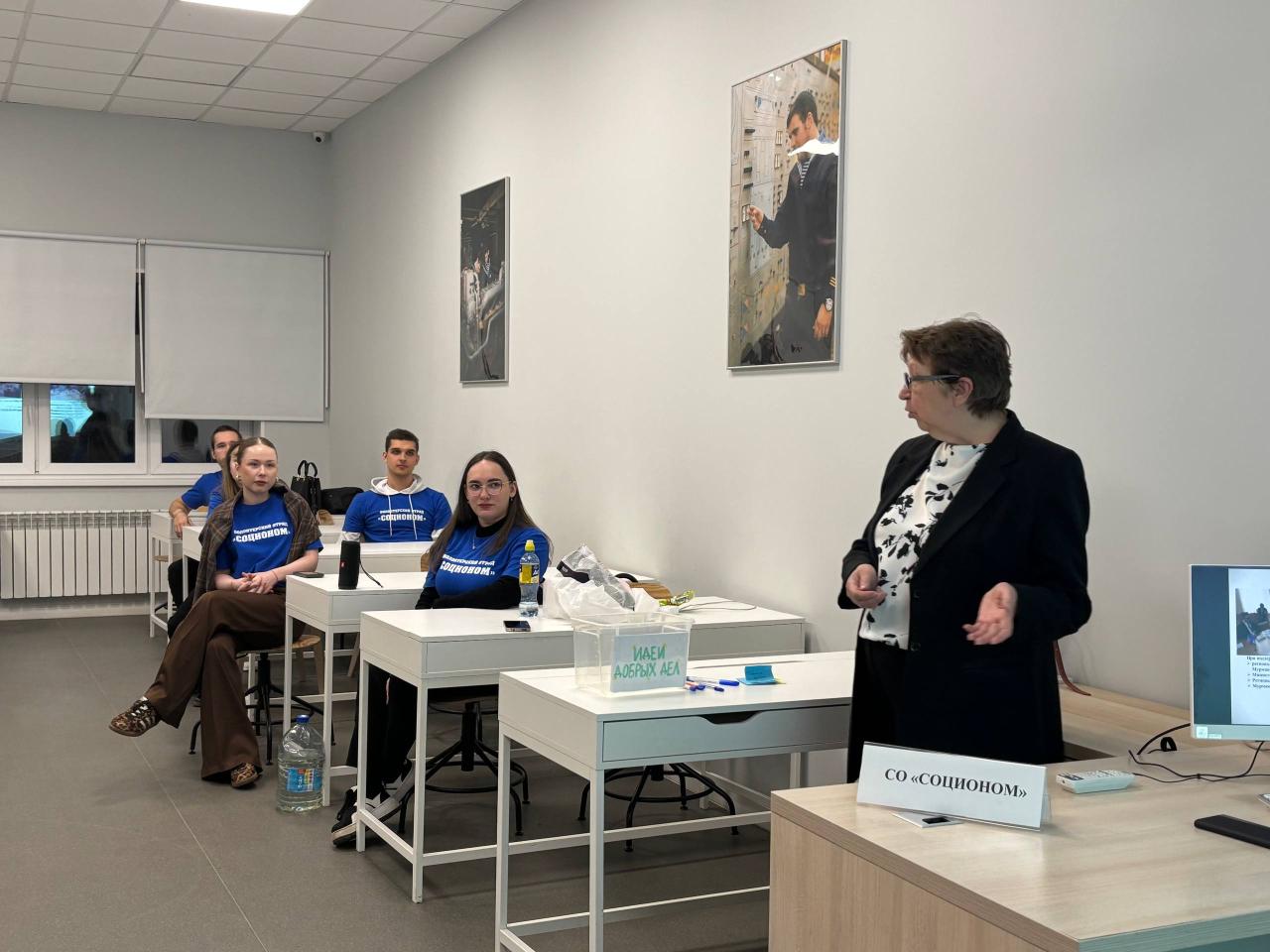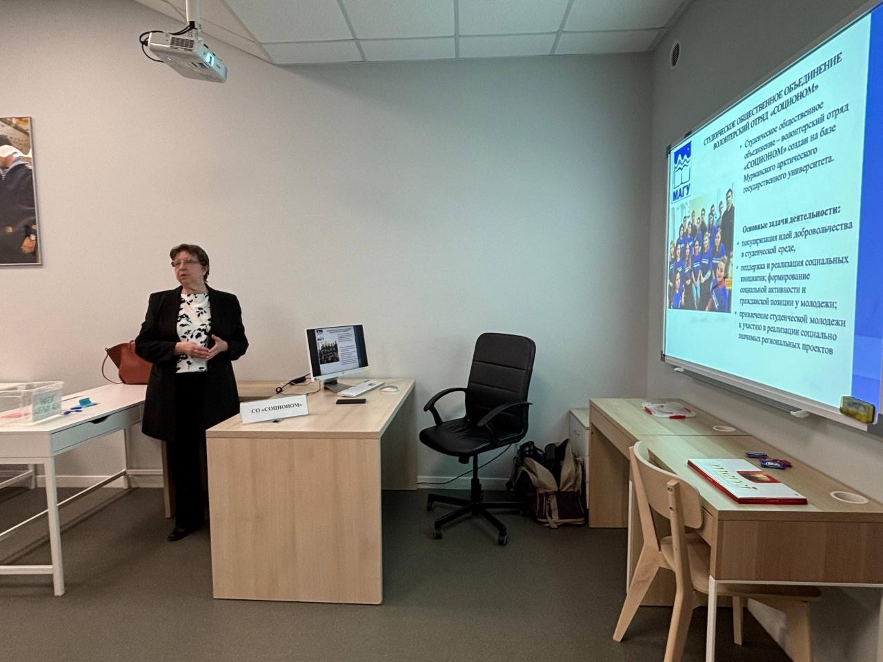 Темой «Внеучебки» стало знакомство первокурсников с действующими студенческими объединениями вуза. Руководитель студенческого объединения «СОЦИОНОМ» Татьяна Дмитриевна Тегалева рассказала новичкам об истории создания отряда, целях, задачах и о содержании его деятельности.