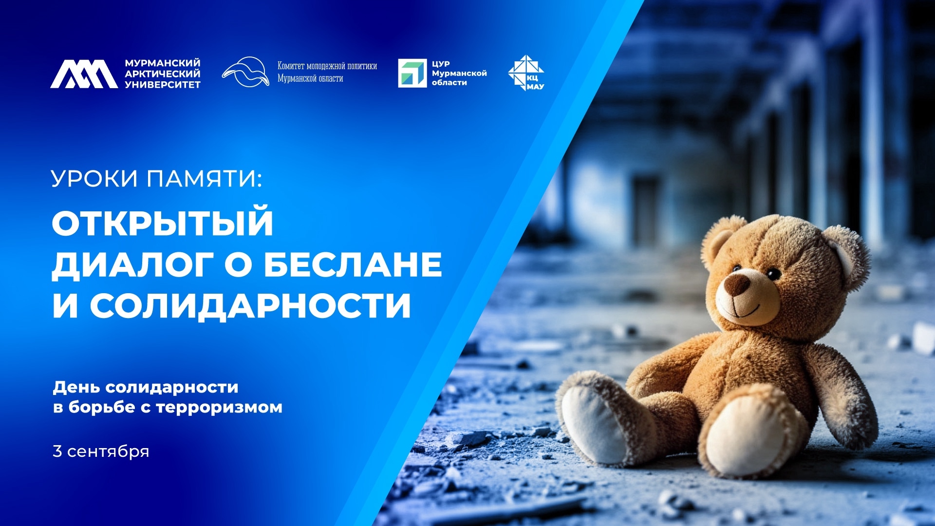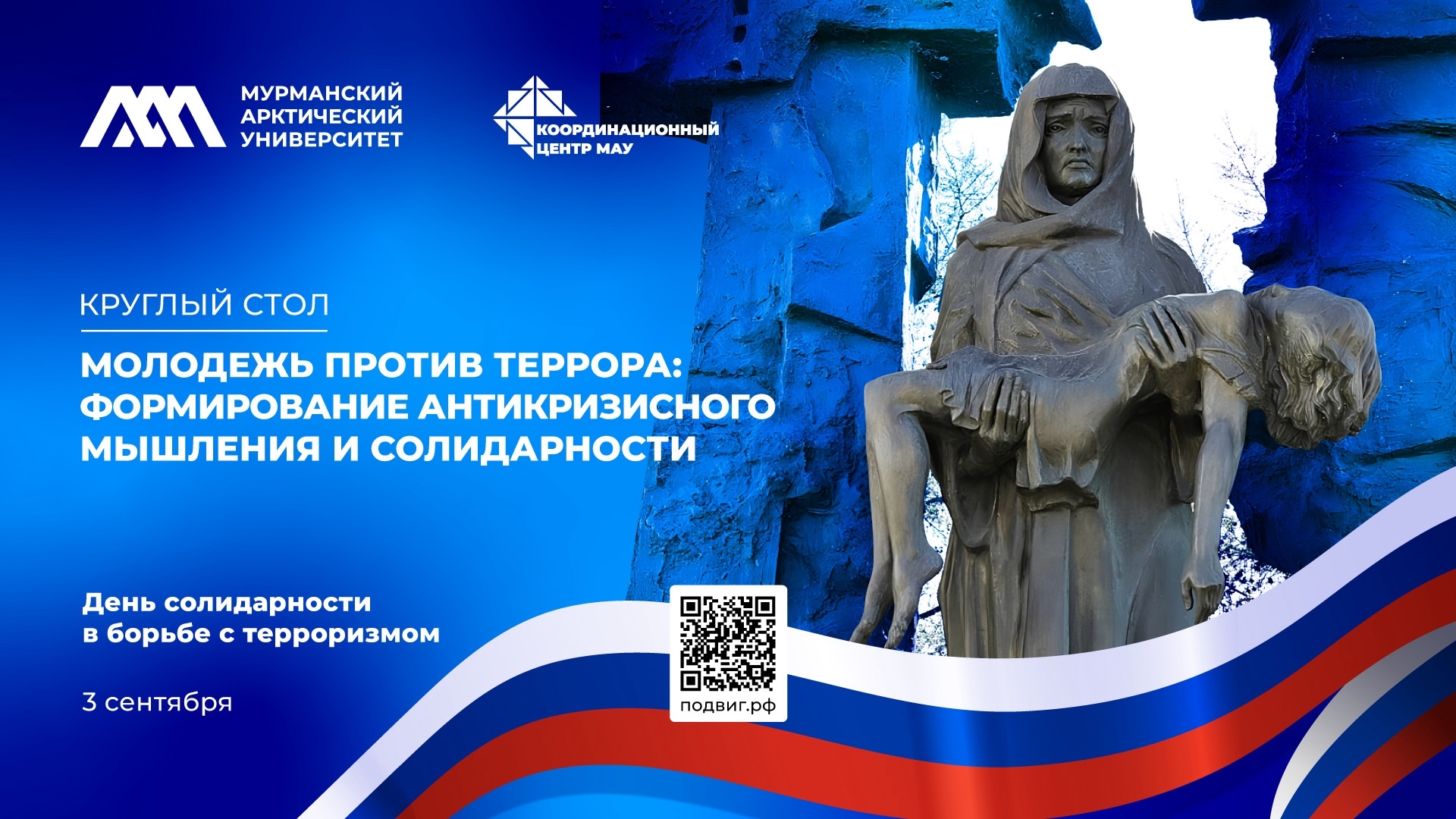 3 сентября 2025 года в ФГАОУ ВО «Мурманский арктический университет» состоятся три значимых мероприятия, посвящённых формированию активной гражданской позиции и профилактике деструктивного поведения среди молодежи. Приглашаем вас принять участие в обсуждениях, которые помогут выработать эффективные механизмы борьбы с идеологией терроризма.