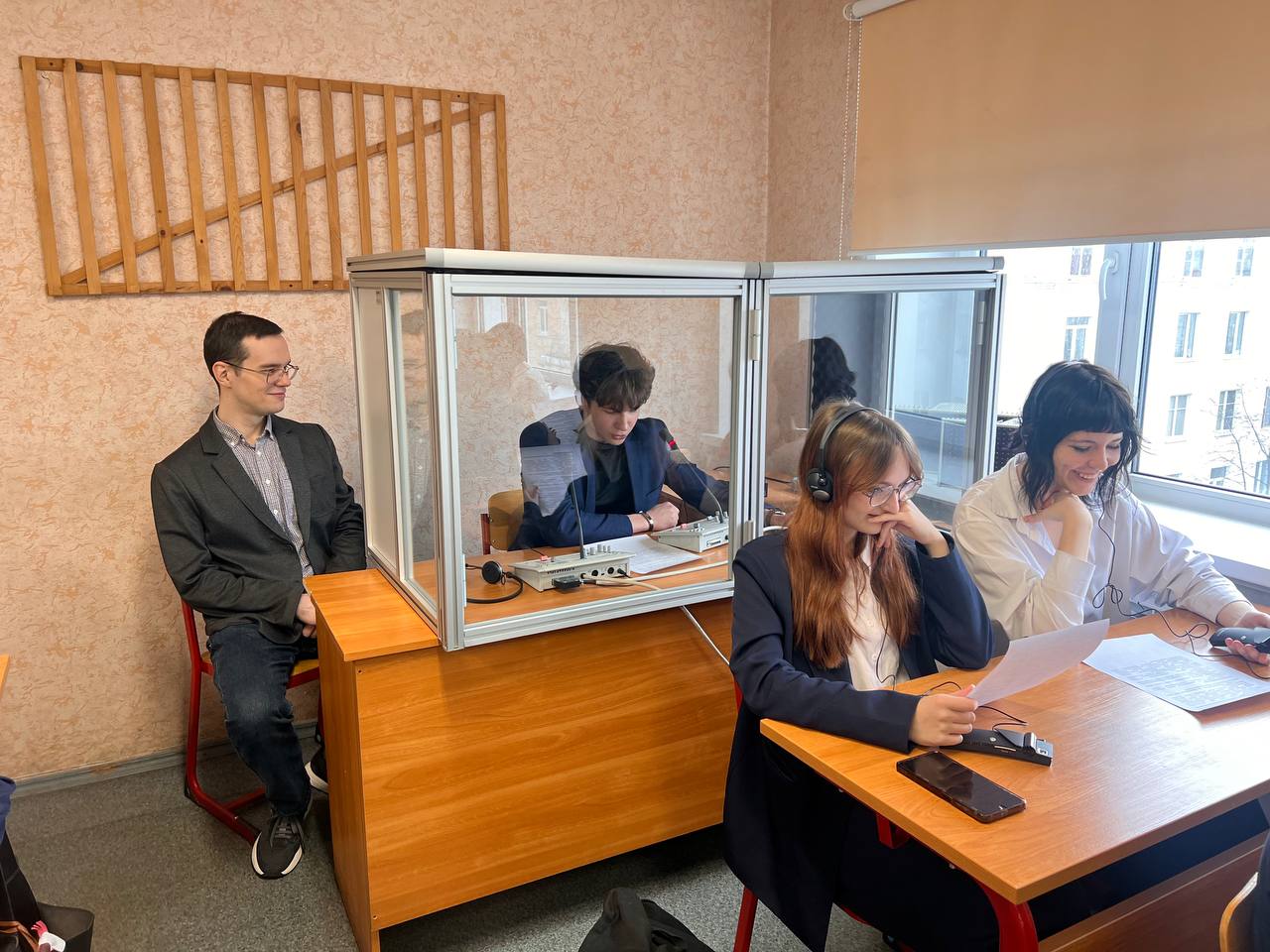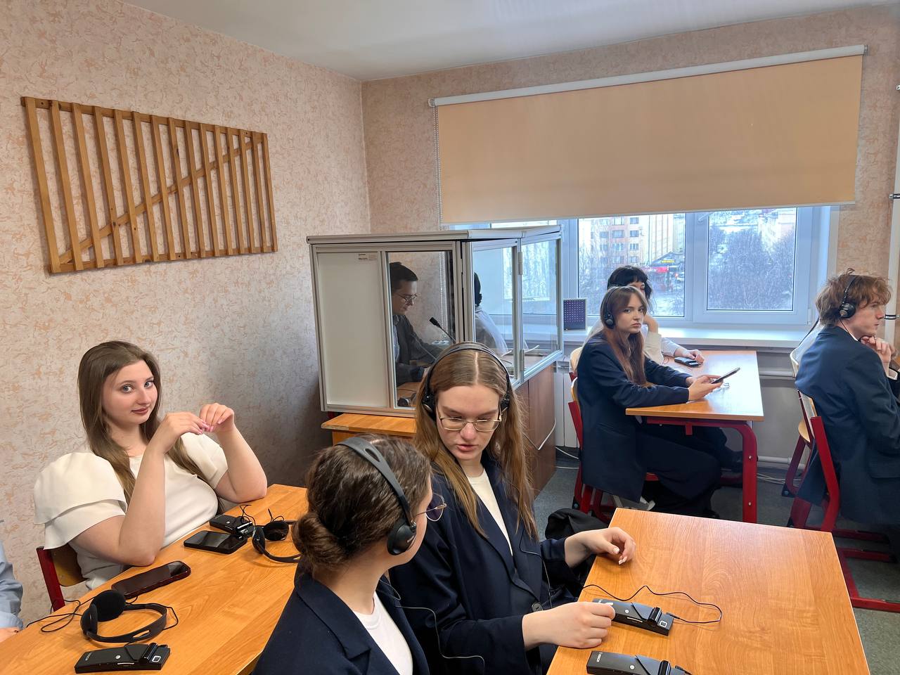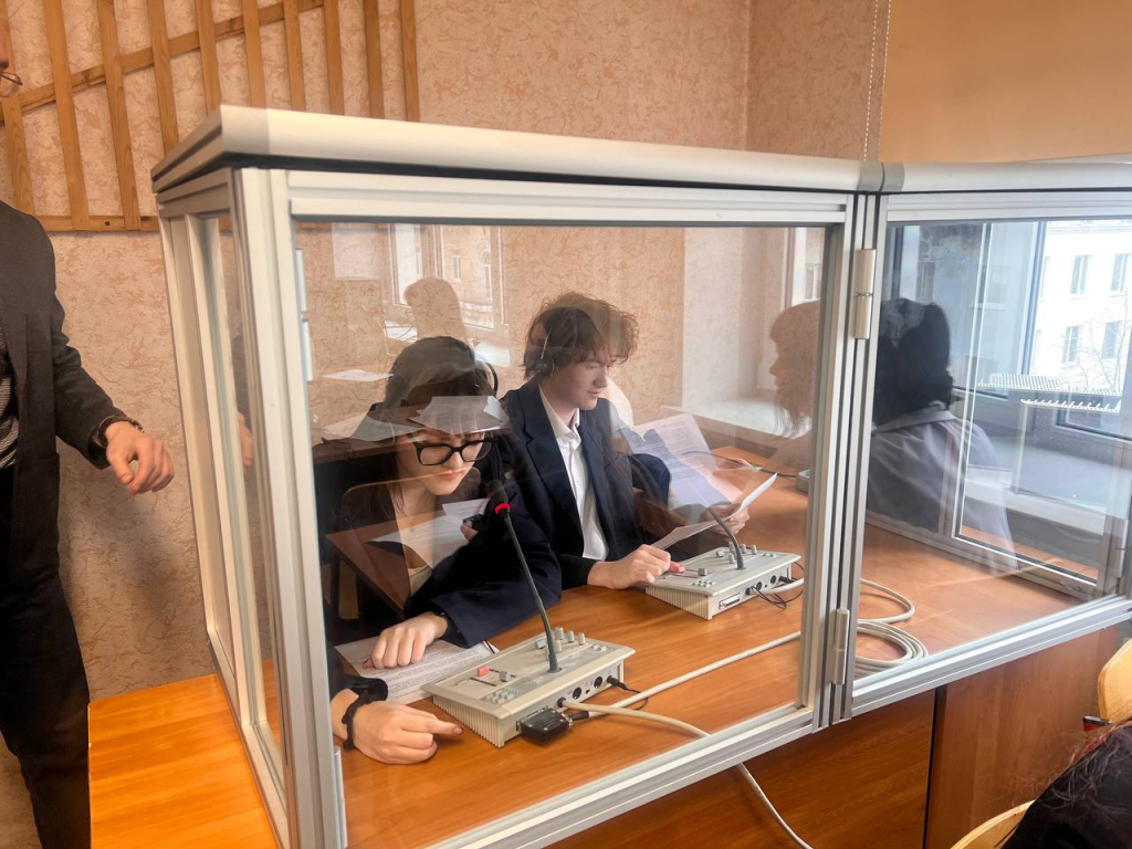 В ходе мероприятия обучающиеся узнали об истории синхронного перевода, о том, чем сложна эта работа, поупражнялись в эхо-повторе и смогли попробовать себя в роли синхронных переводчиков в настоящей кабинке синхрониста.