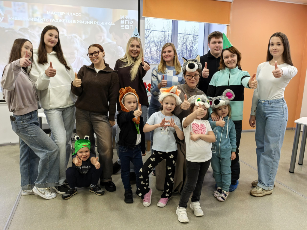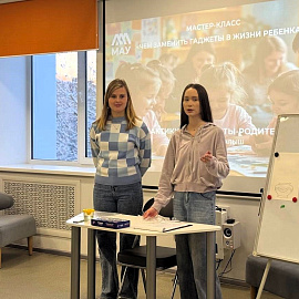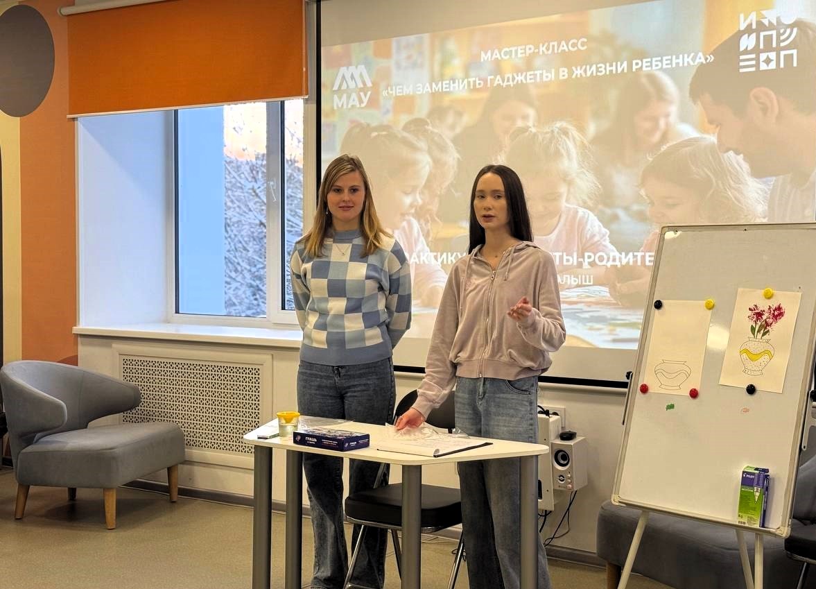 Мастер-класс «Чем заменить гаджеты в жизни ребёнка?» под руководством куратора подготовили и провели студенты 3-го курса направления подготовки Педагогическое образование (с двумя профилями подготовки). Дошкольное образование. Дошкольная дефектология" Института педагогики и психологии МАУ: София Зубарева, Виктория Кузнецова, Дмитрий Смирнов, Полина Тыщук и Юлия Шевякова.