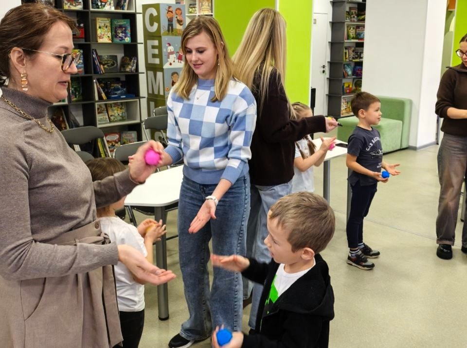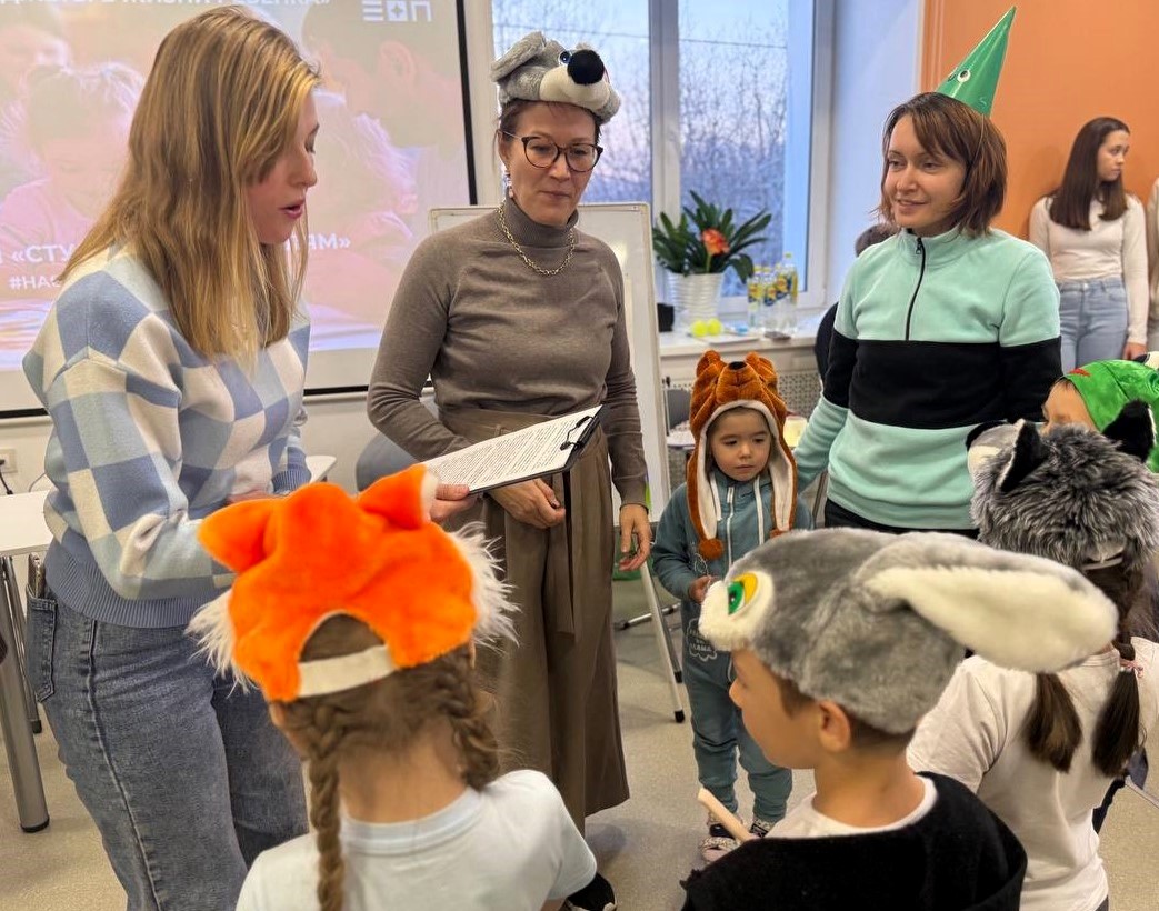 Как рассказала куратор проекта, старший преподаватель кафедры педагогики МАУ Серафима Аминова, практическая часть была организована в формате тематических зон: в творческой зоне семьи осваивали нетрадиционные техники рисования, что способствовало развитию мелкой моторики и творческого воображения; в игровой лаборатории познакомились с настольными и подвижными играми, а также нейрогимнастическими упражнениями с мячами, направленными на координацию движений, укрепление внимания и межполушарное взаимодействие; в зоне театрализации дети и взрослые познакомились с видами театрализованной деятельности и приняли участие в инсценировке сказки «Теремок», используя подручные предметы для звукового сопровождения, что стимулировало речевую активность и эмоциональную выразительность.