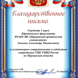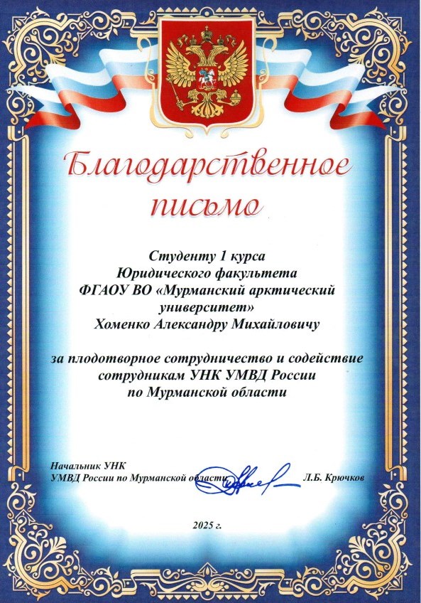 Киберволонтёров МАУ наградили благодарственными письмами начальника УНК УМВД России по Мурманской области