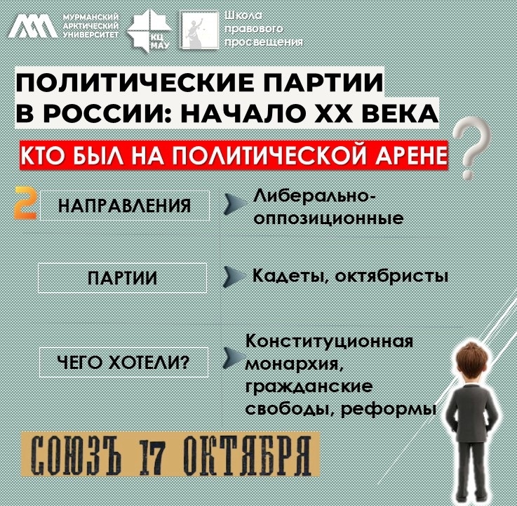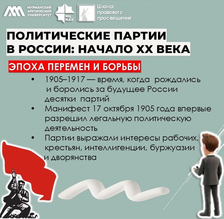 · После Манифеста 17 октября 1905 года политические партии впервые получили право действовать легально.