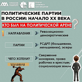 · Революционно-демократические (эсеры, РСДРП) — за свержение монархии, землю крестьянам, права рабочих.