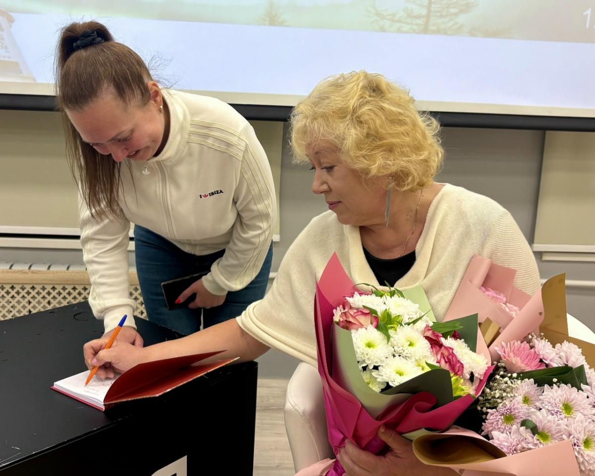 Несколько экземпляров своей книги стихов «Заповедник любви» и номеров журнала «Север» Елена Пиетиляйнен подарила активным слушателям, которые правильно ответили на её вопросы о поэзии.