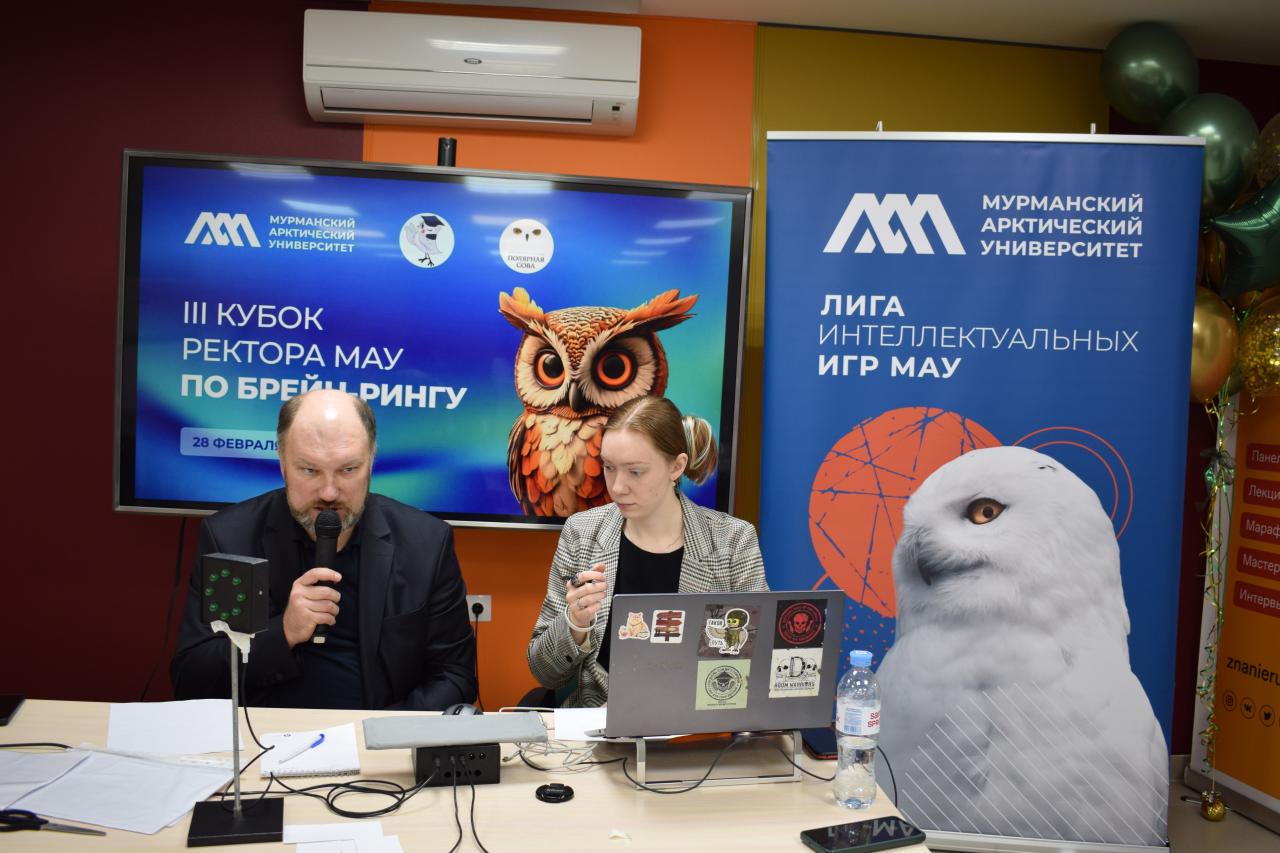 Ведущими турнира выступили Василий Воронов, доцент, кандидат философских наук, доцент кафедры философии и социальных наук МАУ, куратор студенческого объединения «Лига интеллектуальных игр» МАУ; Александр Челтыбашев, заведующий кафедры строительства, энергетики и транспорта МАУ; Юлия Литвинова, член правления Мурманского Клуба интеллектуальных игр «Полярная Сова» Михаил Бардинов, член Мурманского Клуба интеллектуальных игр «Полярная Сова».
